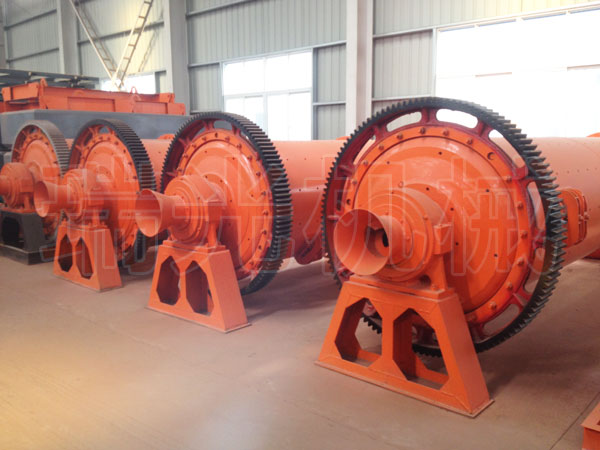 工作时,通过电动机和减速机把扭力传给机器的大小齿轮,从而使机器筒体转动,由于筒体的转动与筒体衬板共同作用将一部分钢球带升到一定高度,进行自由坠落运动产生冲击力,撞击筒体内的物料,其余部分钢球进行泻落运动产生摩擦力和物料混在一起随着筒体的转动不停的与物料进行碰撞和研磨,筒体在回转的过程中,研磨体也有滑落现象,在滑落过程中给物料以研磨作用,为了有效的利用研磨作用,对物料粒度教大的一般二十目磨细时候,把磨体筒体用隔仓板分隔为二段,即成为双仓,物料进入仓时候被钢球击碎,物料进入****仓时候,钢段对物料进行研磨,磨细合格的物料从出料端空心轴排出。